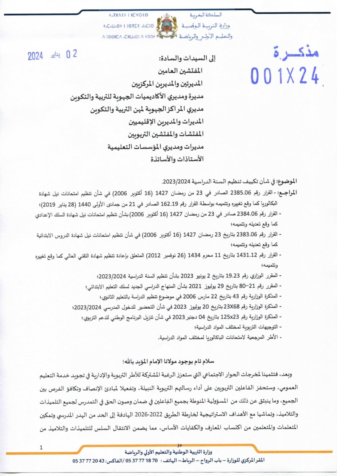 بلاغ ورد الآن لوزارة التربية الوطنية: أعلنت وزارة التربية الوطنية والتعليم الأولي والرياضة عن تمديد السنة الدراسية 2024/2023 وتحدد مواعيد جديدة للامتحانات الإشهادية.