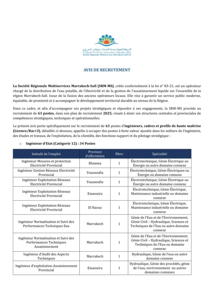 Concours de Recrutement SRM Marrakech – Safi 2025 (244 Postes).
