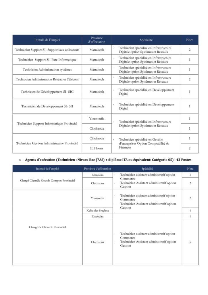 Ces postes seront répartis entre plusieurs provinces de la région: Marrakech, Essaouira, Youssoufia, Chichaoua, El Haouz, Kelaa des Sraghna et Rahamna.