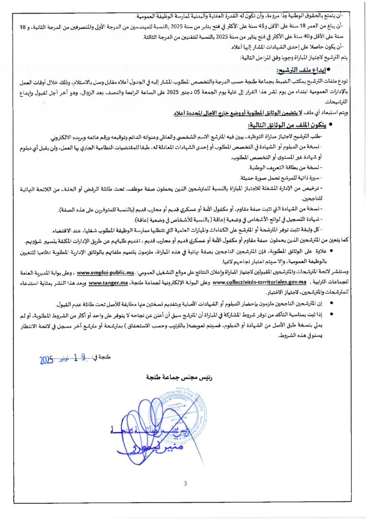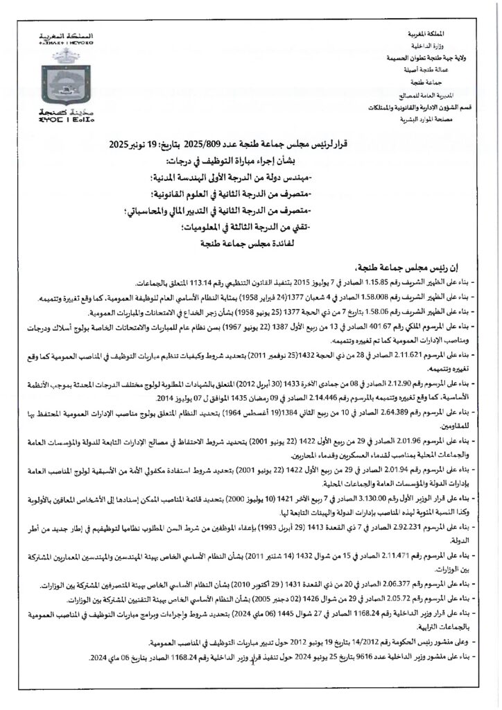 La Commune Tanger organise un concours pour le recrutement de 4 postes répartis comme suit: